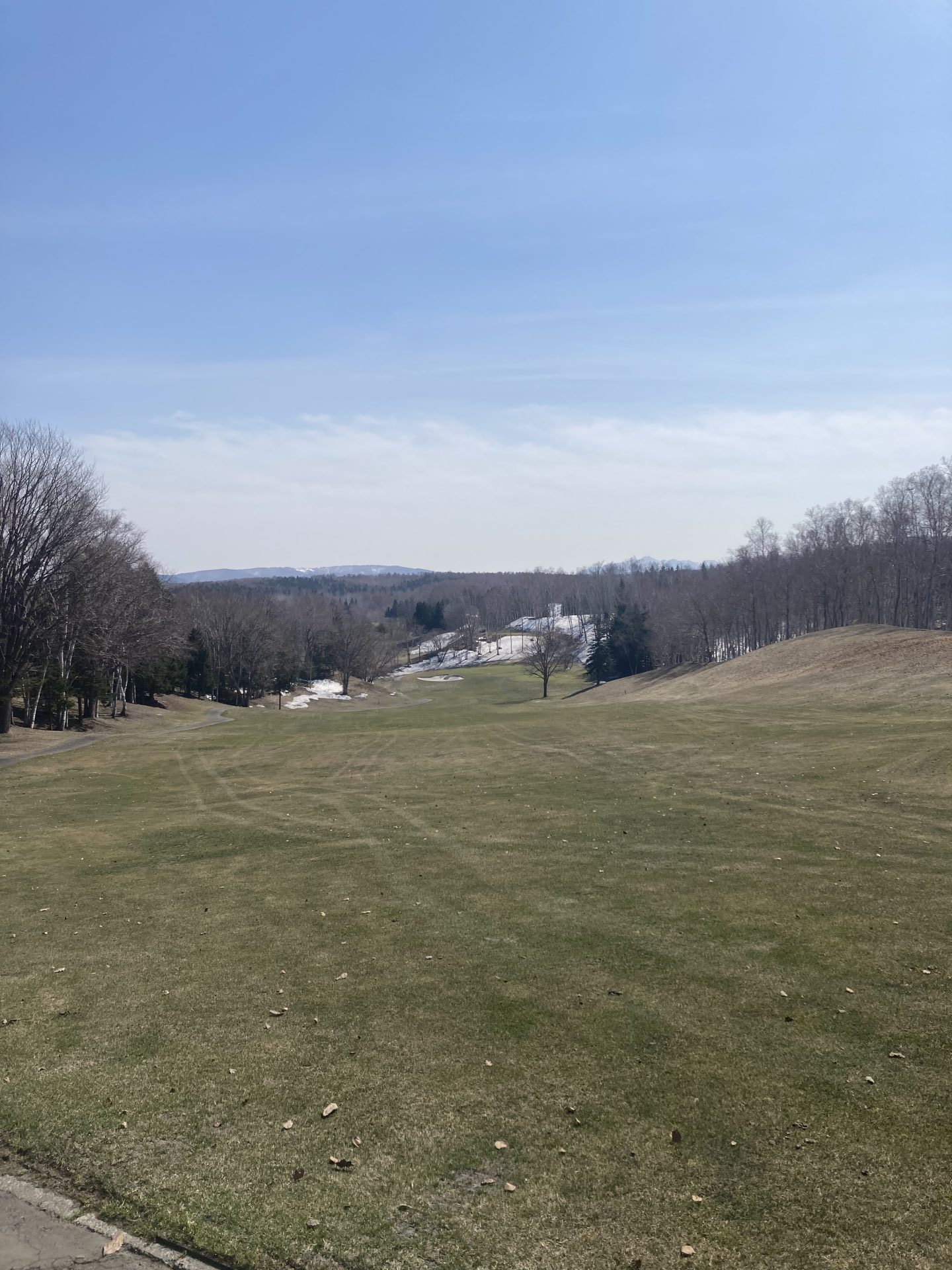 【コースの現在の様子】 本日撮影したコースの写真を数枚添付いたします。 雪解けも順調に進み、芝のコンディションも非常に良好です。春の爽やかな風を感じながら、今シーズンの初打ちをぜひお楽しみください。